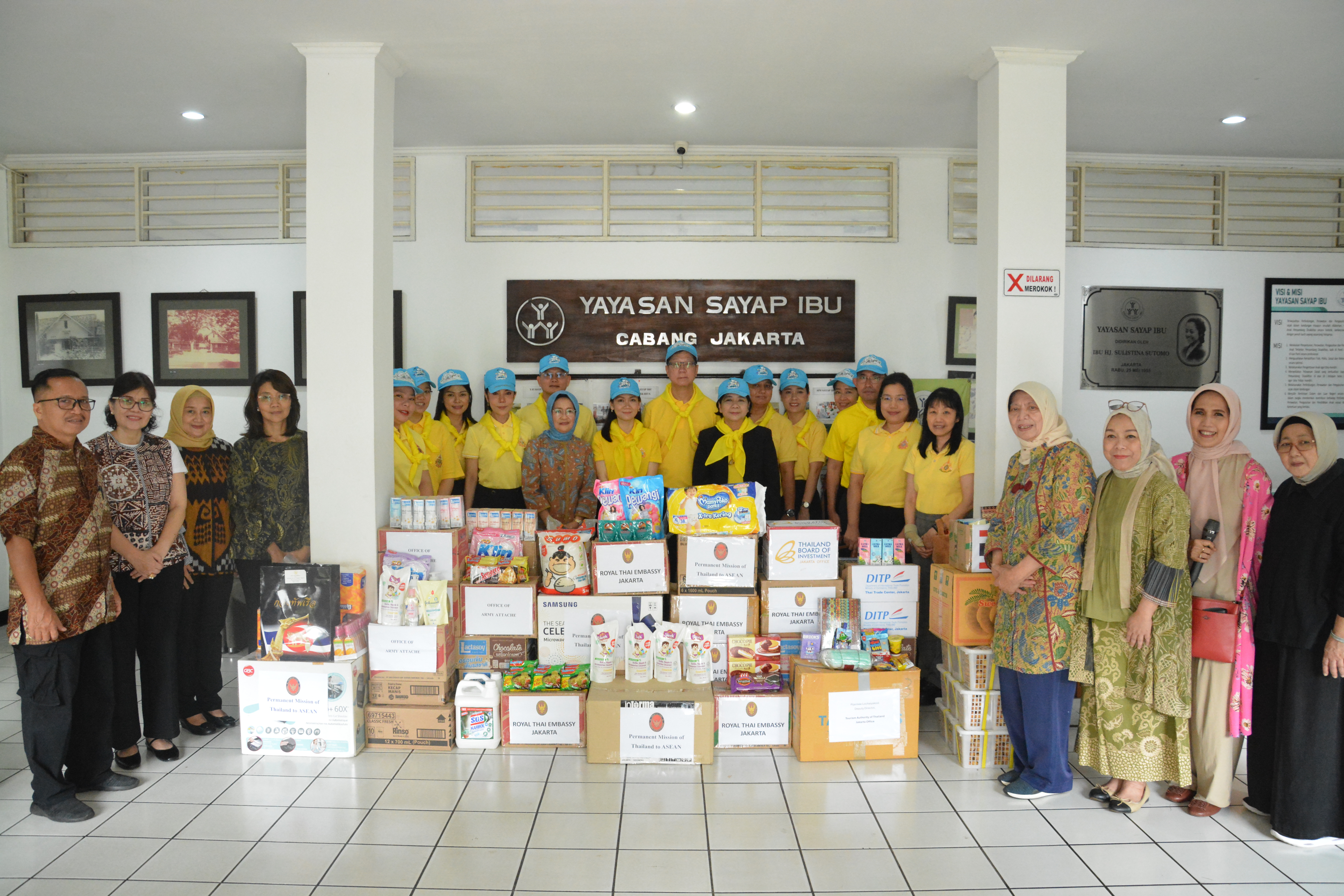 นาง Tjondrowati Subiyanto ผู้บริหารสถานรับเลี้ยงเด็กยากไร้ Yayasan Sayap Ibu สาขากรุงจาการ์ตา ได้ขอบคุณสถานเอกอัครราชทูตฯ และหน่วยงานทีมประเทศไทยที่ได้ร่วมกันนำสิ่งของจำเป็นมามอบแก่สถานรับเลี้ยงเด็กยากไร้ฯ อย่างต่อเนื่องเป็นเวลาหลายปีแล้ว รวมทั้งได้ขอบคุณบริษัท แลคตาซอย จำกัด ซึ่งได้ร่วมบริจาคนมถั่วเหลืองแลคตาซอยจำนวนมากกว่า 1,000 กล่อง