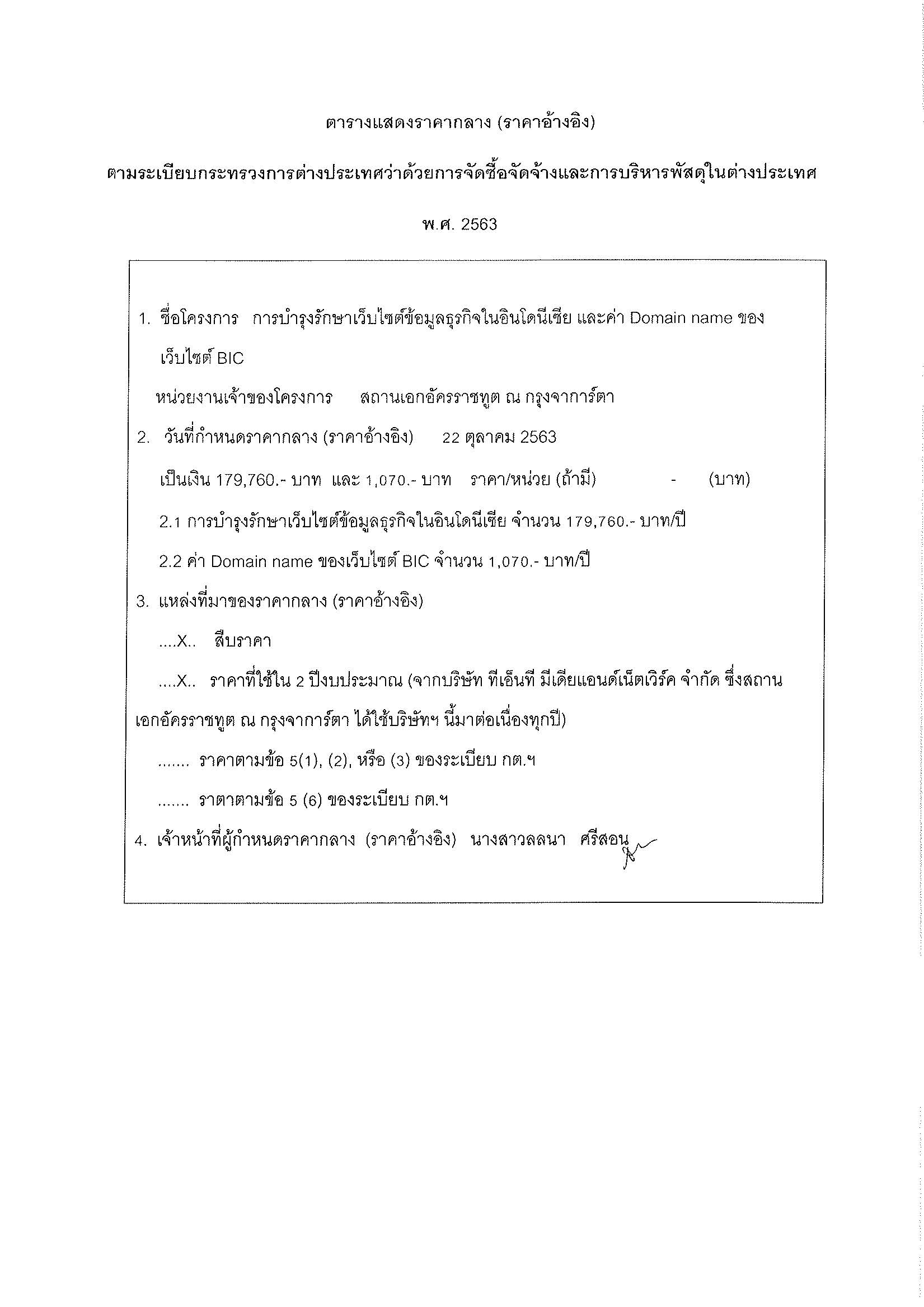 ประกาศราคากลางการบำรุงเว็บไซต์ข้อมูลธุรกิจในอินโดนีเซียและค่า domain name ของเว็บไซต์ BIC 22 ต.ค. 2563