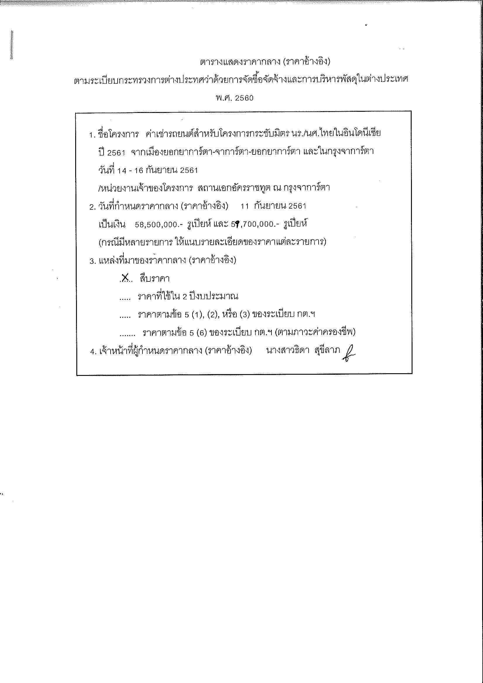 ประกาศราคากลางเช่ารถยนต์สำหรับโครงการกระชับมิตรนักศึกษาไทยในอินโดนีเซีย