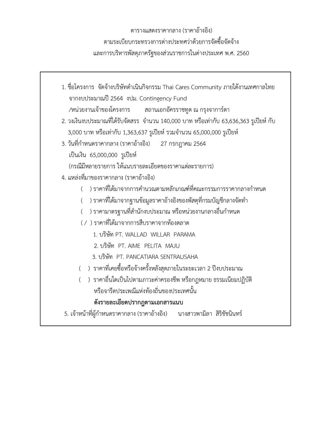 ประกาศราคากลาง การจัดจ้างบริษัทดำเนินกิจกรรม Thai Cares Community ภายใต้งานเทศกาลไทย