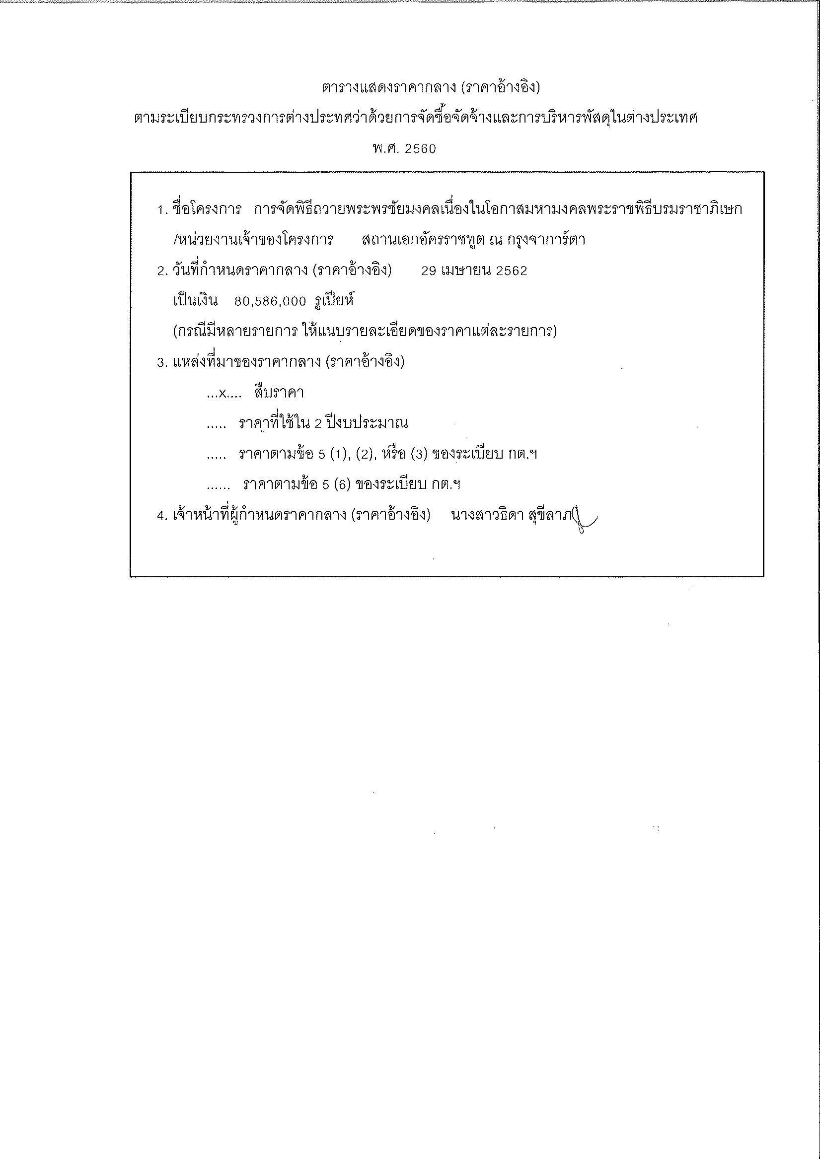 ประกาศราคากลาง การจัดพิธีถวายพระพรชัยมงคลเนื่องในโอกาสมหามงคลพระราชพิธีบรมราชาภิเษก
