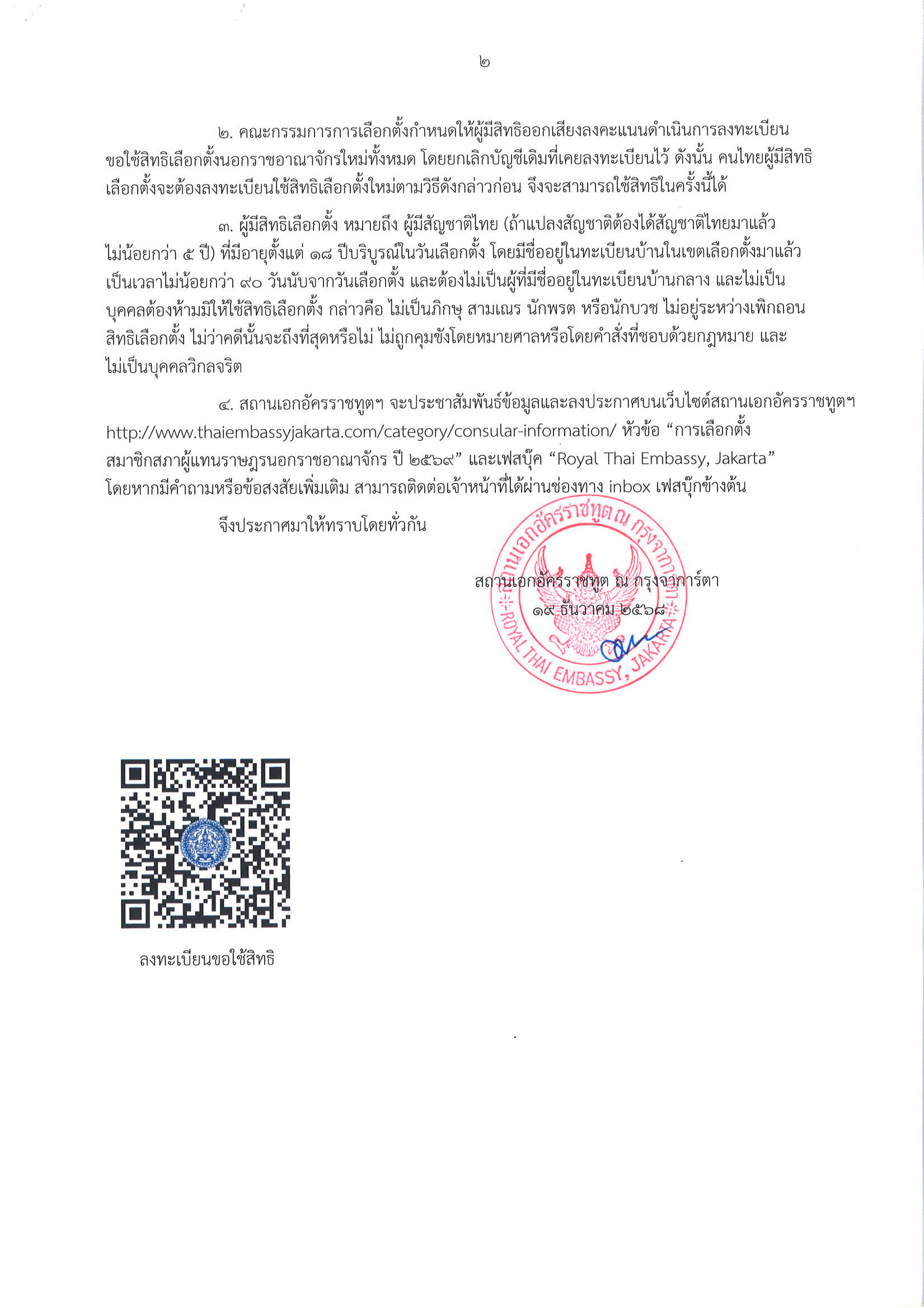 เลือกตั้ง – การใช้สิทธิเลือกตั้งและออกเสียงประชามติ (แบบคูหา) ที่สถานเอกอัครราชทูต ณ กรุงจาการ์ตา อินโดนีเซีย 21 ม.ค. 2569