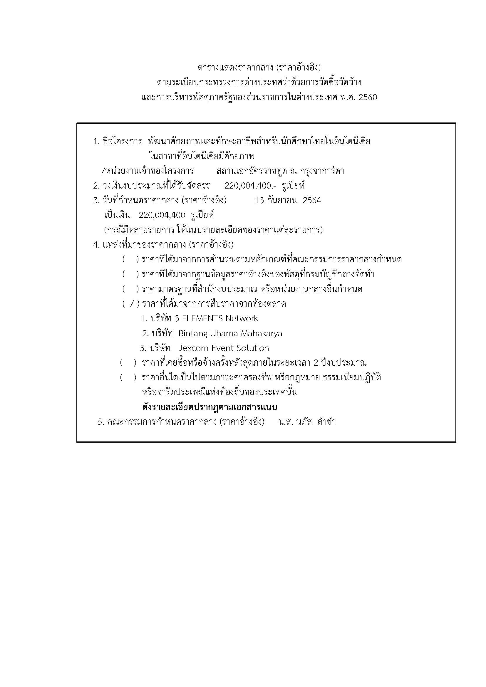 ราคากลางพัฒนาศักยภาพและทักษะอาชีพสาหรับนักศึกษาไทยในอินโดนีเซีย ในสาขาที่อินโดนีเซียมีศักยภาพ 13 ก.ย. 2564