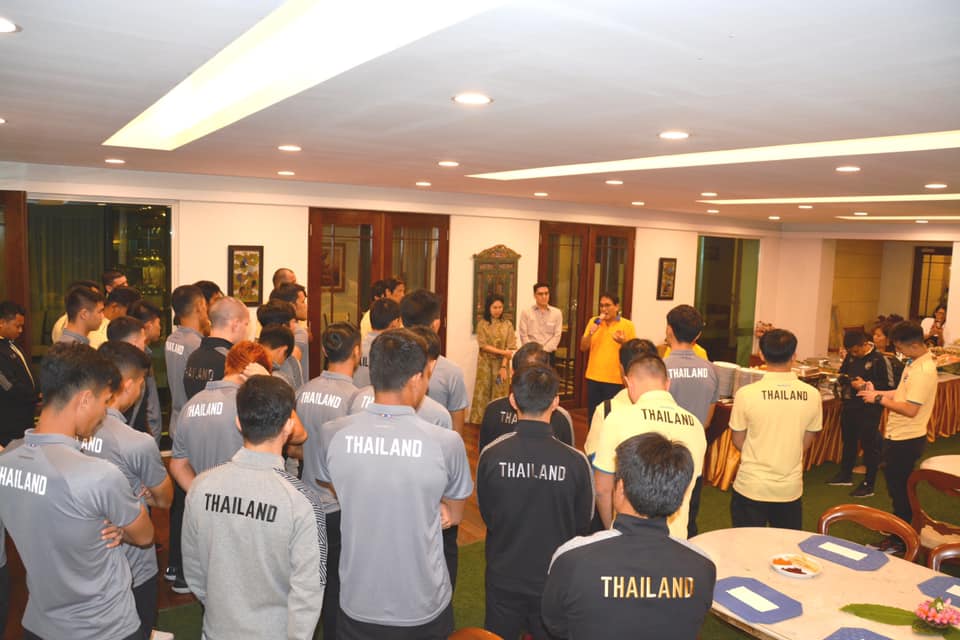 เอกอัครราชทูตฯ ได้แสดงความยินดีที่ได้มีโอกาสเลี้ยงต้อนรับช้างศึก ทีมชาติไทย ในฐานะตัวแทนประเทศ ที่ได้สร้างชื่อเสียงให้กับประเทศไทย และได้ให้กำลังใจและอวยพรให้ทีมช้างศึก มีความมุ่งมั่น ร่วมแรง ร่วมใจกันในการนำชัยชนะมาถวายพระบาทสมเด็จพระเจ้าอยู่หัว และมอบแก่ประชาชนคนไทย เอกอัครราชทูตฯ ได้มีหนังสือถึงรัฐมนตรีกระทรวงว่าการกระทรวงกีฬาฯ อินโดนีเซีย แสดงความห่วงกังวลเกี่ยวกับการรักษาความปลอดภัยในวันแข่งขัน และขอให้ยกระดับมาตรการรักษาความปลอดภัยเป็นระดับสูงเพื่อให้เป็นไปตามกฎข้อบังคับของ FIFA