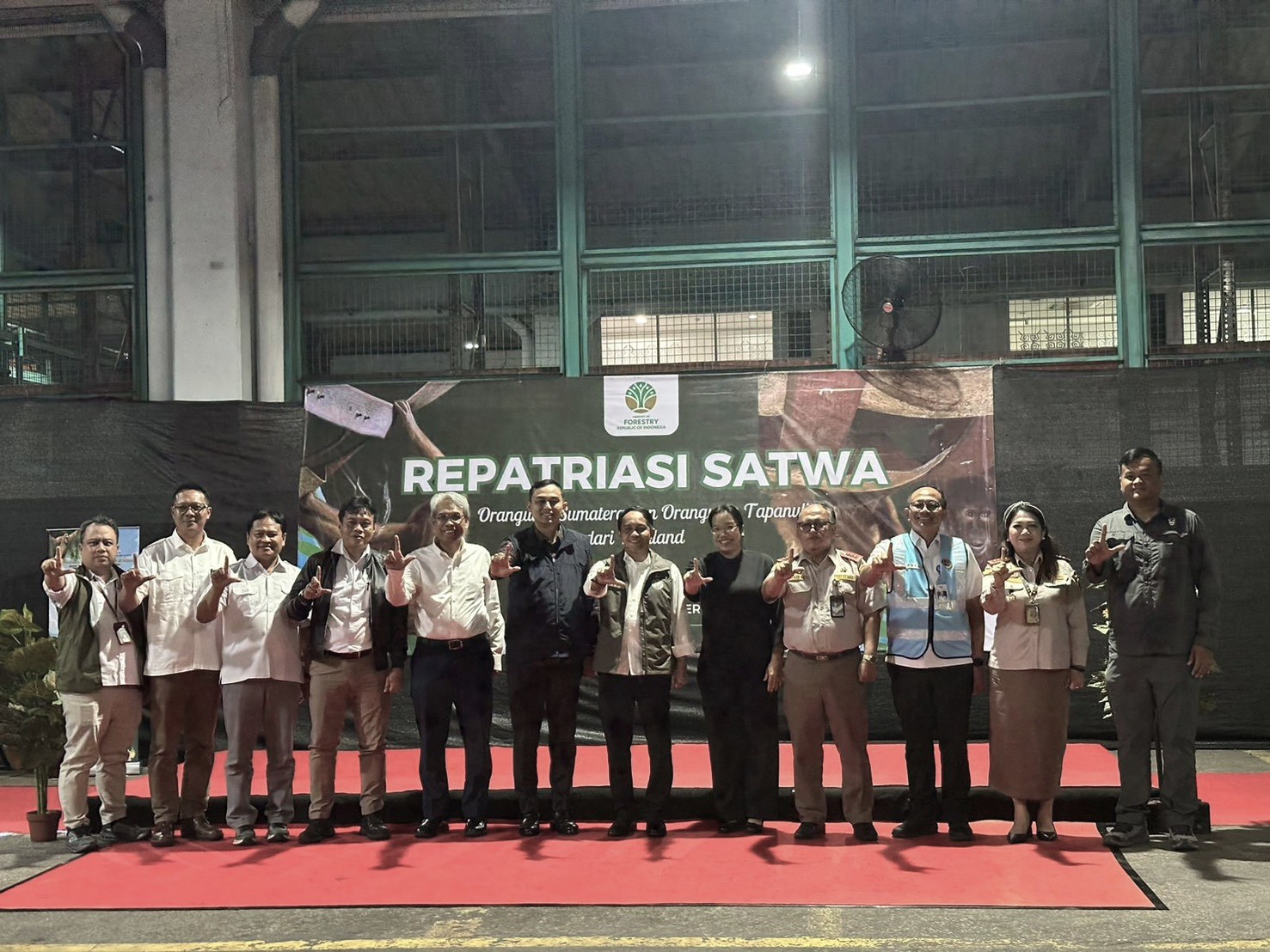 เมื่อวันที่ 23 ธันวาคม 2568 นางสาวมินธิรา ภูภัทรพงศ์ อัครราชทูตที่ปรึกษา สถานเอกอัครราชทูต ณ กรุงจาการ์ตา ในฐานะผู้แทนเอกอัครราชทูต ได้เข้าร่วมพิธีต้อนรับอุรังอุตัง 4 ตัว (เจ ไร่ขิง นุ่น และโบว์) จากประเทศไทยกลับคืนสู่อินโดนีเซีย ณ ท่าอากาศยานซูการ์โน-ฮัตตา โดยมีนาย Raja Juli Antoni รัฐมนตรีว่าการกระทรวงป่าไม้อินโดนีเซีย เป็นประธานในพิธี และมีผู้เข้าร่วมจากกระทรวงป่าไม้ กระทรวงการต่างประเทศ และหน่วยงานต่าง ๆ ของอินโดนีเซีย