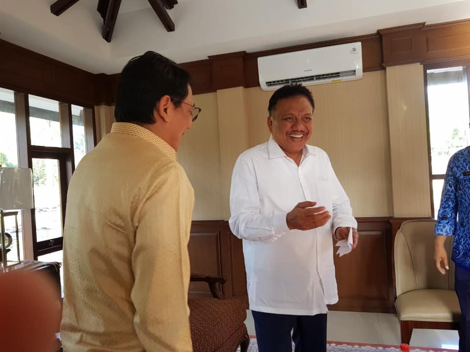 On 17 September 2019, H.E. Mr. Songphol Sukchan, Ambassador of Thailand to Indonesia, met with H.E.  Mr. Olly Dondokambey, Governor of North Sulawesi to discuss cooperation between Thailand and Indonesia in the areas of fisheries, agriculture, tourism, and  academic cooperation. The Ambassador introduced the Thai businesses in the province such as Charoen Pokaphand Indonesia (CPI) that has chicken hatcheries and other agriculture related businesses and PT Indoworld that specializes in coconut products.  North Sulawesi has great economic potential, with its good infrastructure  and numerous facilities to support investment.