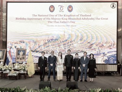 1 ธ.ค. 2568 สถานเอกอัครราชทูต ณ กรุงจาการ์ตา จัดพิธีวางพานพุ่มดอกไม้ถวายราชสักการะพระบาทสมเด็จพระบรมชนกาธิเบศร มหาภูมิพลอดุลยเดชมหาราช บรมนาถบพิตร เนื่องในวันคล้ายวันพระบรมราชสมภพพระบาทสมเด็จพระบรมชนกาธิเบศร มหาภูมิพลอดุลยเดชมหาราช บรมนาถบพิตร วันชาติ และวันพ่อแห่งชาติ 5 ธันวาคม 2568