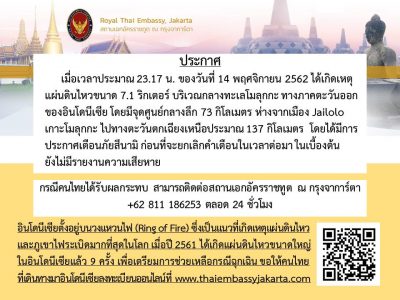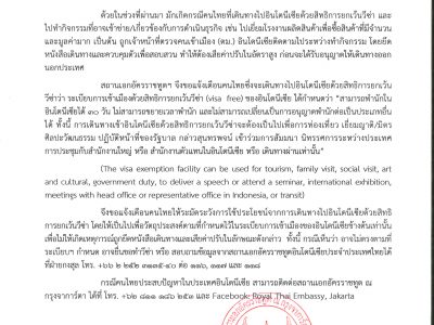 20 ก.พ. 2563 ประกาศสถานเอกอัครราชทูต ณ กรุงจาการ์ตา เรื่อง แจ้งเตือนการไปอินโดนีเซียด้วยสิทธิการยกเว้นวีซ่า