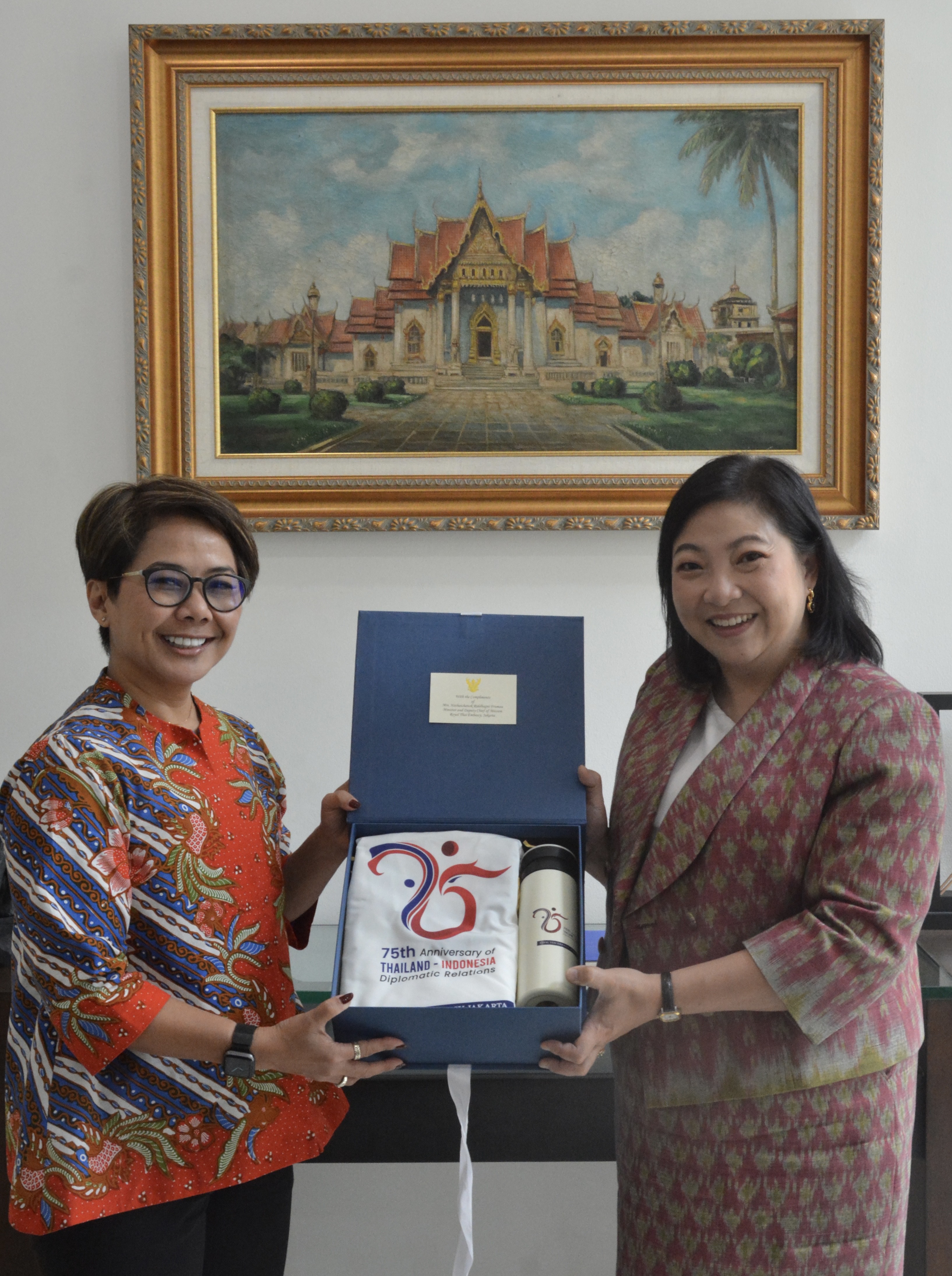 On 9 July 2025, Mrs. Hathaichanok Riddhagni Frumau, Deputy Chief of Mission/Minister, met with H.E. Ms. Agustini Rahayu, Deputy Minister for Media Creativity of the Ministry of Creative Economy of the Republic of Indonesia at the Royal Thai Embassy. The Deputy Minister expressed appreciation for Thailand’s creative economy sector, noting its great potential and rapid development in recent years. The sector has achieved significant success both domestically and internationally. In the Indonesian market, Thai films, series, and T-Pop music have become increasingly popular. She expressed a keen interest in promoting cooperation in the creative economy, particularly in the film industry with Thailand. The Deputy Chief of Mission remarked that Thailand’s success stems from the integration and collaboration among relevant stakeholders, both public and private sectors and reiterated that Thailand is also ready to enhance cooperation with Indonesia.