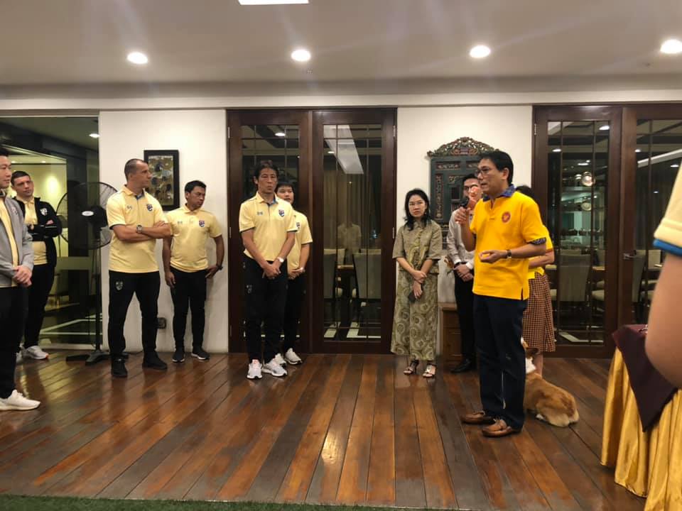 เอกอัครราชทูตฯ ได้แสดงความยินดีที่ได้มีโอกาสเลี้ยงต้อนรับช้างศึก ทีมชาติไทย ในฐานะตัวแทนประเทศ ที่ได้สร้างชื่อเสียงให้กับประเทศไทย และได้ให้กำลังใจและอวยพรให้ทีมช้างศึก มีความมุ่งมั่น ร่วมแรง ร่วมใจกันในการนำชัยชนะมาถวายพระบาทสมเด็จพระเจ้าอยู่หัว และมอบแก่ประชาชนคนไทย เอกอัครราชทูตฯ ได้มีหนังสือถึงรัฐมนตรีกระทรวงว่าการกระทรวงกีฬาฯ อินโดนีเซีย แสดงความห่วงกังวลเกี่ยวกับการรักษาความปลอดภัยในวันแข่งขัน และขอให้ยกระดับมาตรการรักษาความปลอดภัยเป็นระดับสูงเพื่อให้เป็นไปตามกฎข้อบังคับของ FIFA