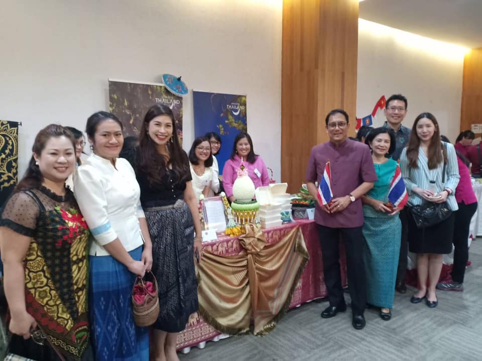 During 7-8 November 2019, the Royal Thai Embassy, the Permanent Mission of Thailand to ASEAN, Offices of the Defense Attache, and the Thai community in Jakarta organized a booth selling Thai food and products at the ASEAN Women’s Circle (AWC) Charity Bazaar at the ASEAN Secretariat. Proceeds from the event were donated to AWC to support their charitable cause.