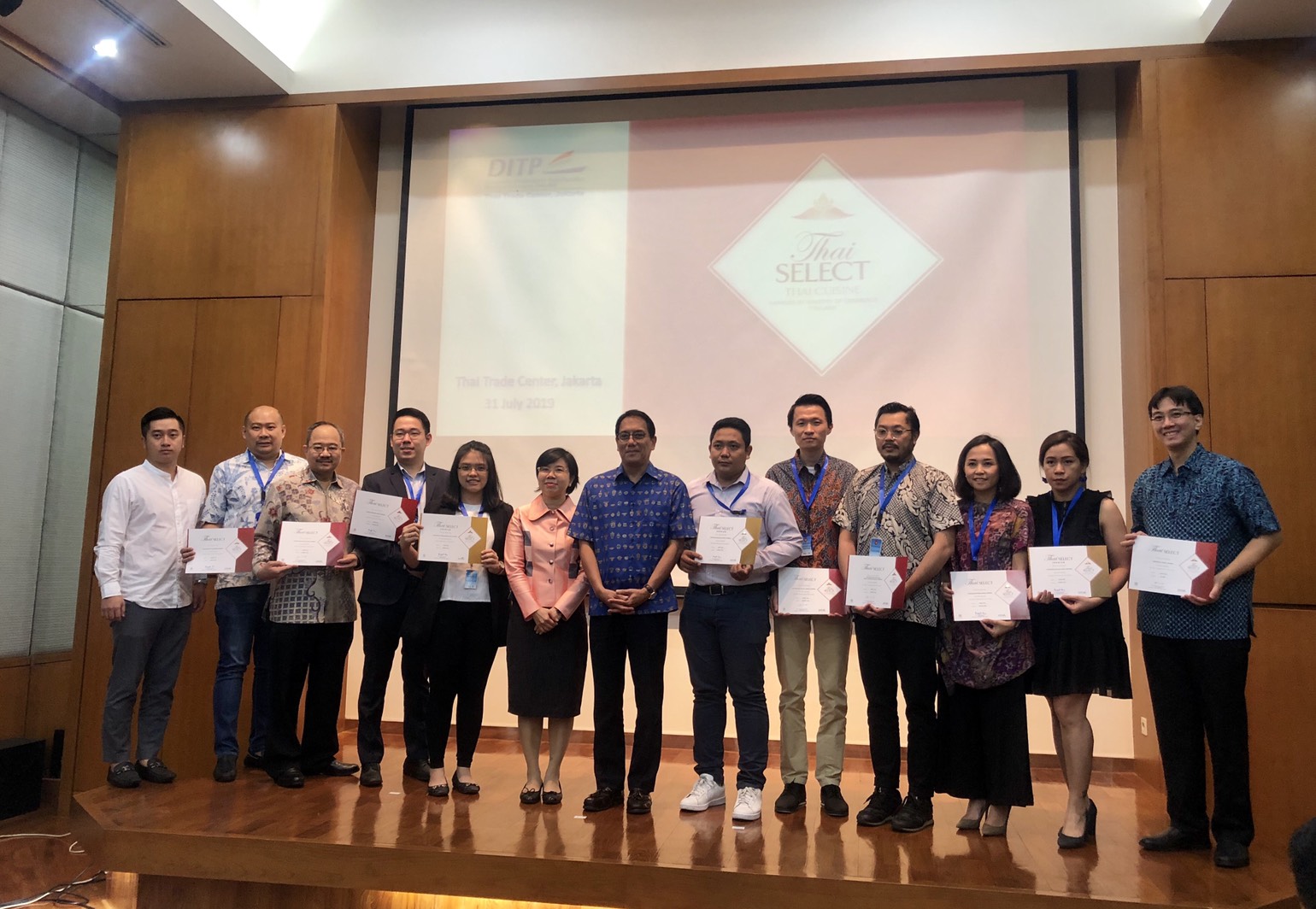 On 31 July 2019, H.E. Mr. Songphol Sukchan, Ambassador of Thailand to Indonesia, presided over the Thai Select award ceremony. A total of 12 Thai restaurants in Jakarta and Bali received the Thai Select brand certification for 2019. The event was organized by the Thai Trade Center in Jakarta, and included over 70 participants, comprising representatives of Thai restaurants and Thai food importers and fruits in Indonesia as well.