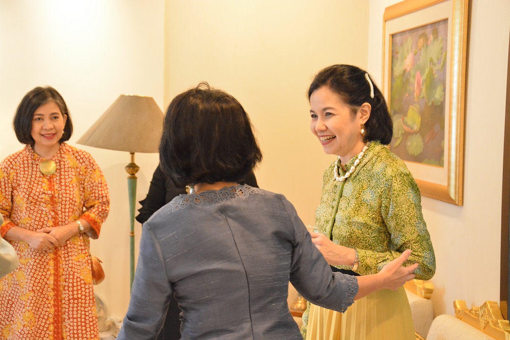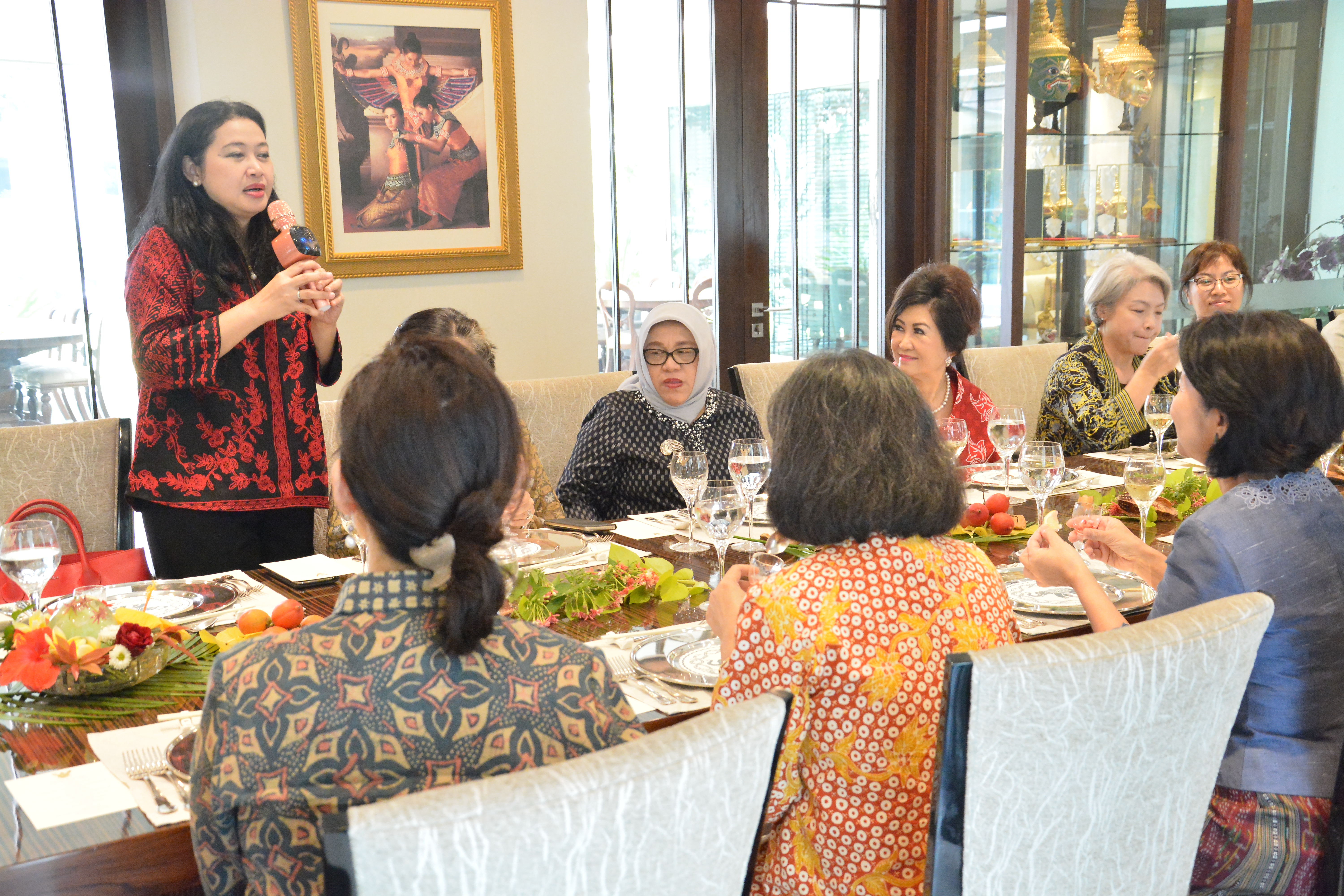 The “Thai Taste @Thai House” was attended by 20 Indonesian ladies and spouses of Heads of Diplomatic Missions such as Ibu Yasmin Fachir, spouse of Vice Foreign Minister of Indonesia, Datin Chan Chin Ming, spouse of Secretary-General of ASEAN, Ibu Mita Mochtan, spouse of Deputy Secretary-General of ASEAN, Ibu Sari Percaya, spouse of Directorate General for Asia-Pacific and African Affairs, Ibu Elmyra Bambang, President of Women International Club Jakarta (WIC) and Ibu Ellen Hidayat, CEO of Emporium Pluit Mall, Jakarta as well as spouses of Ambassadors of Japan, ROK, Viet Nam, Philippines, Myanmar, New Zealand, Norway and Ireland to Indonesia and to ASEAN.