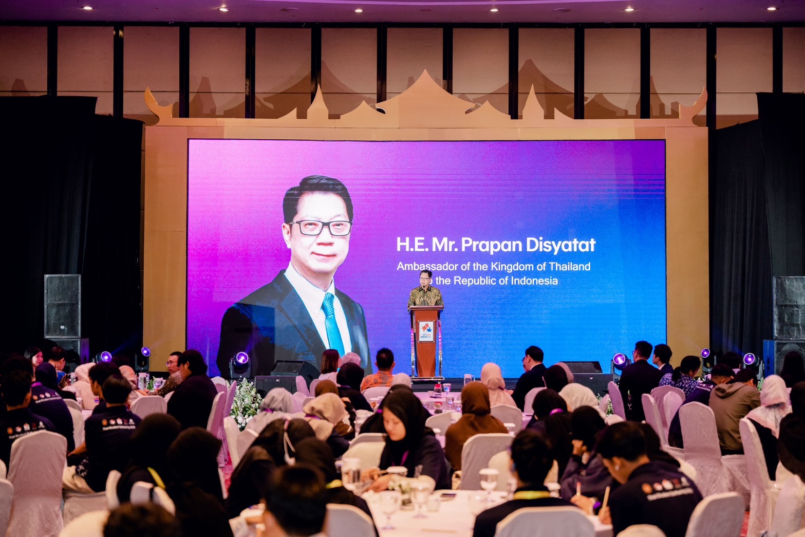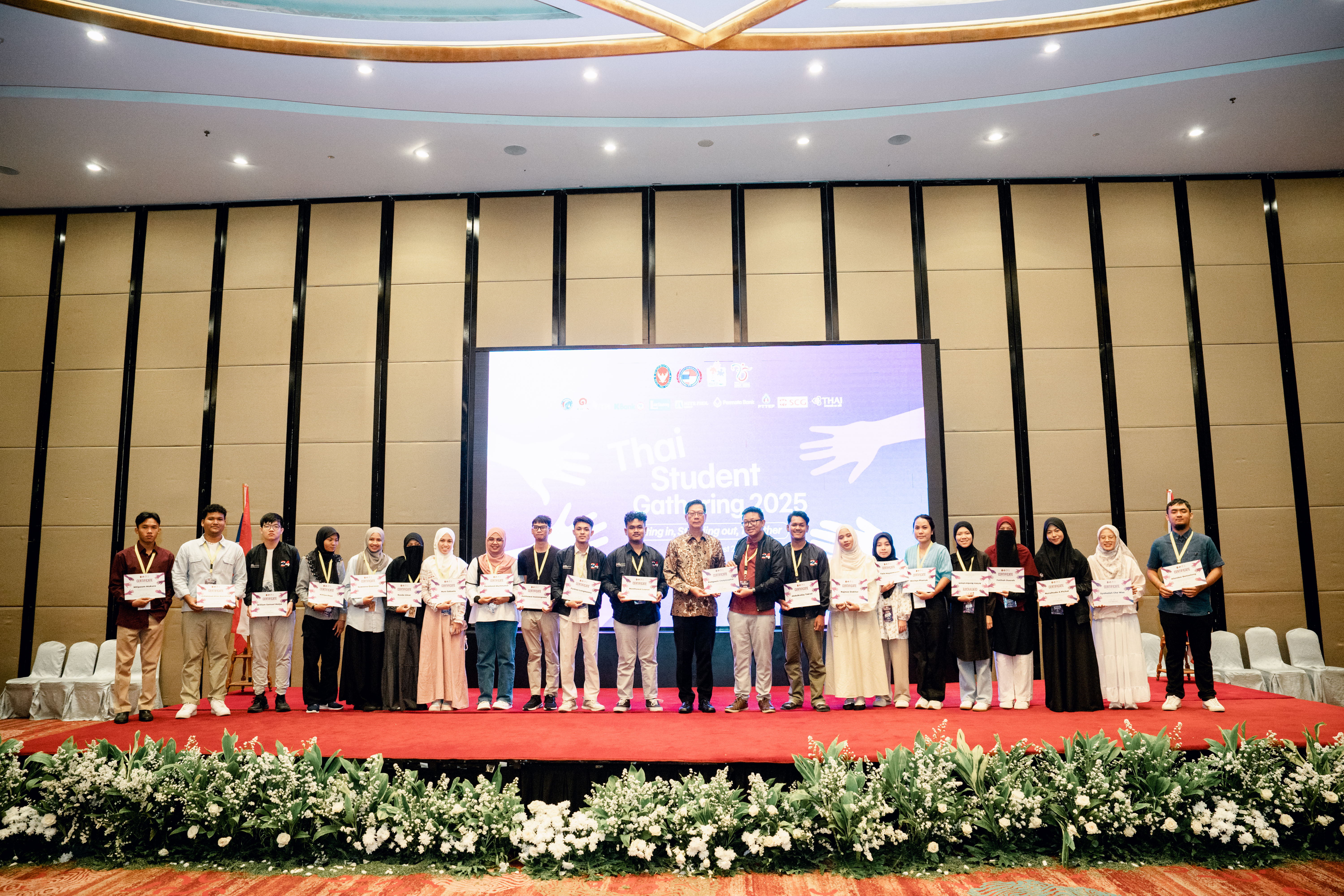 On this occasion, H.E. Mr. Prapan Disyatat, Ambassador of Thailand to Jakarta, presided over the opening ceremony, underlining the objectives of the event and emphasizing the Embassy’s readiness to support Thai students in Indonesia to live and study happily, achieve success, and foster unity, while developing knowledge and skills for their future careers. Remarks were also given by Mr. Pongprach Makchaeng, Ambassador attached to the Ministry of Foreign Affairs of Thailand, and Mr. Piyasiri Wattanawarangkool, Deputy Secretary-General of the Southern Border Provinces Administrative Center (SBPAC).