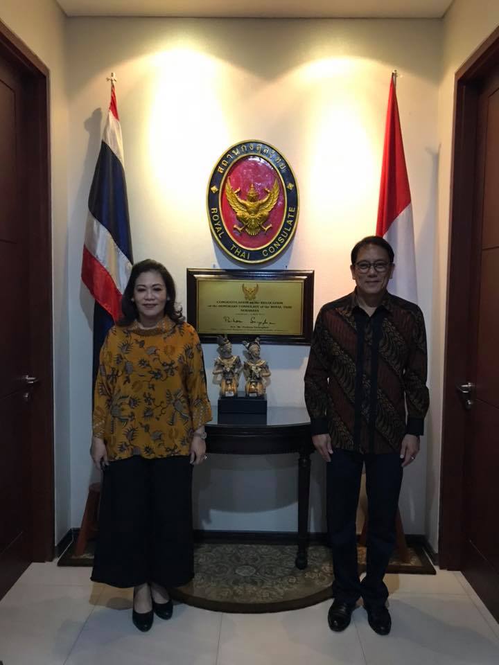 เมื่อวันที่ 8 กุมภาพันธ์ 2562 นายทรงพล สุขจันทร์ เอกอัครราชทูต ณ กรุงจาการ์ตา และข้าราชการทีมประเทศไทย (สำนักงานส่งเสริมการค้าในต่างประเทศ และสำนักงานเศรษฐกิจการลงทุน) ได้เยี่ยมเยียนสถานกงสุลกิตติมศักดิ์ ณ เมืองสุราบายา โดยมีนาง Onny Almasyhur กงสุลกิตติมศักดิ์ฯ และเจ้าหน้าที่ให้การต้อนรับ